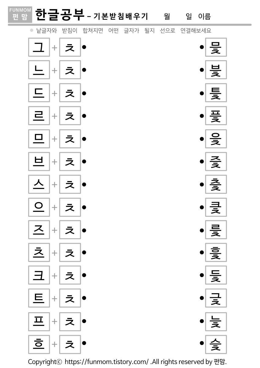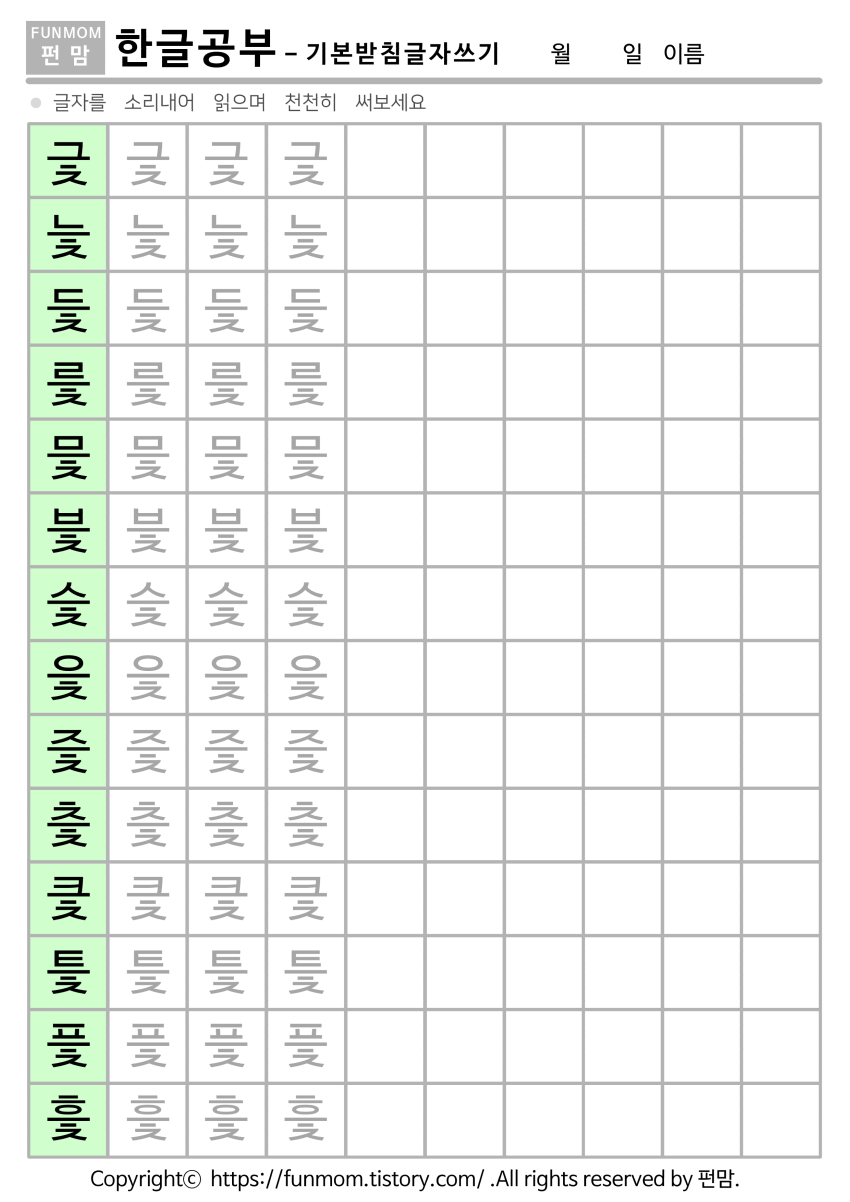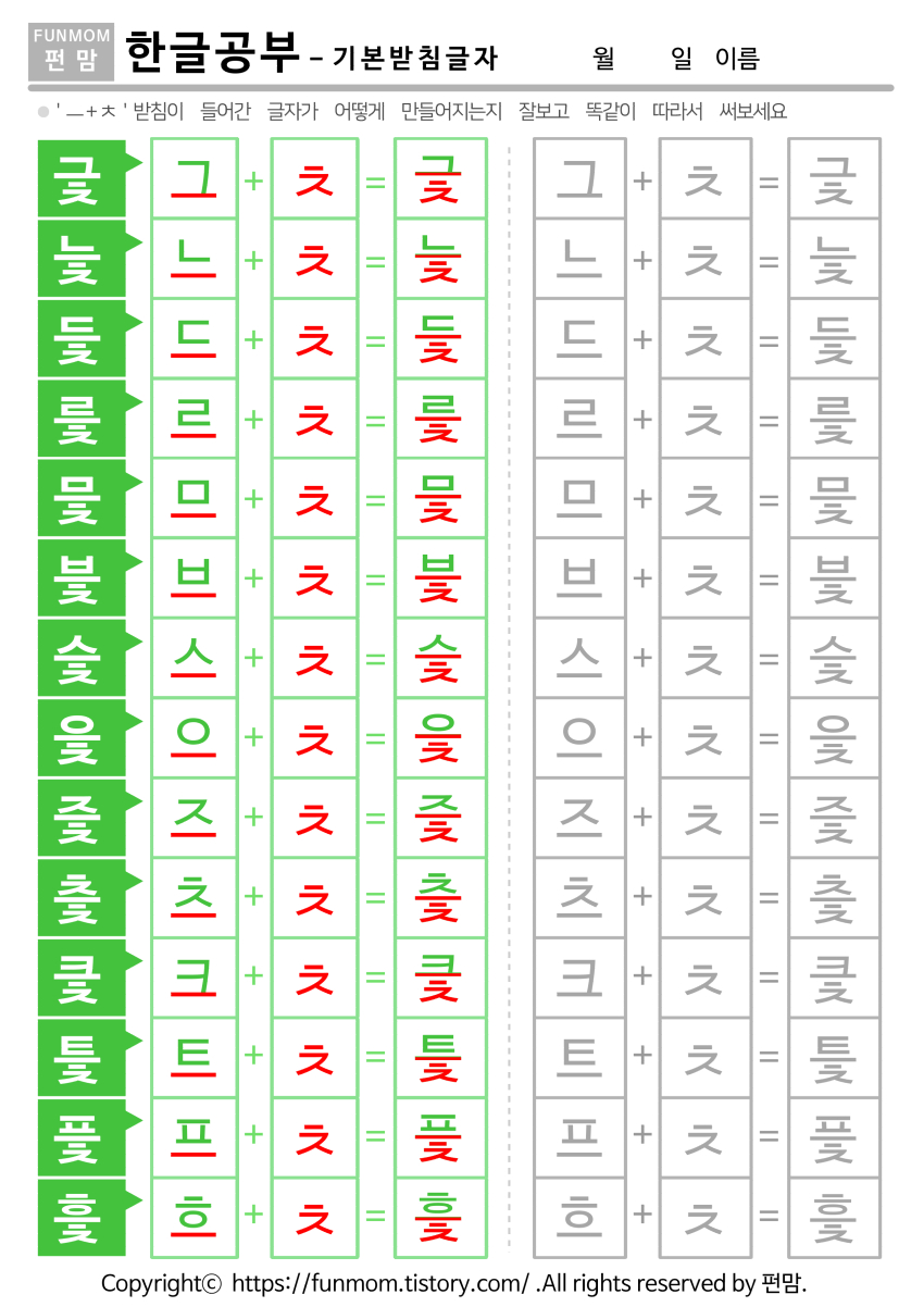 | ㅡ+ㅍ 기본받침 글자쓰기 (0) | 2021.07.13 |